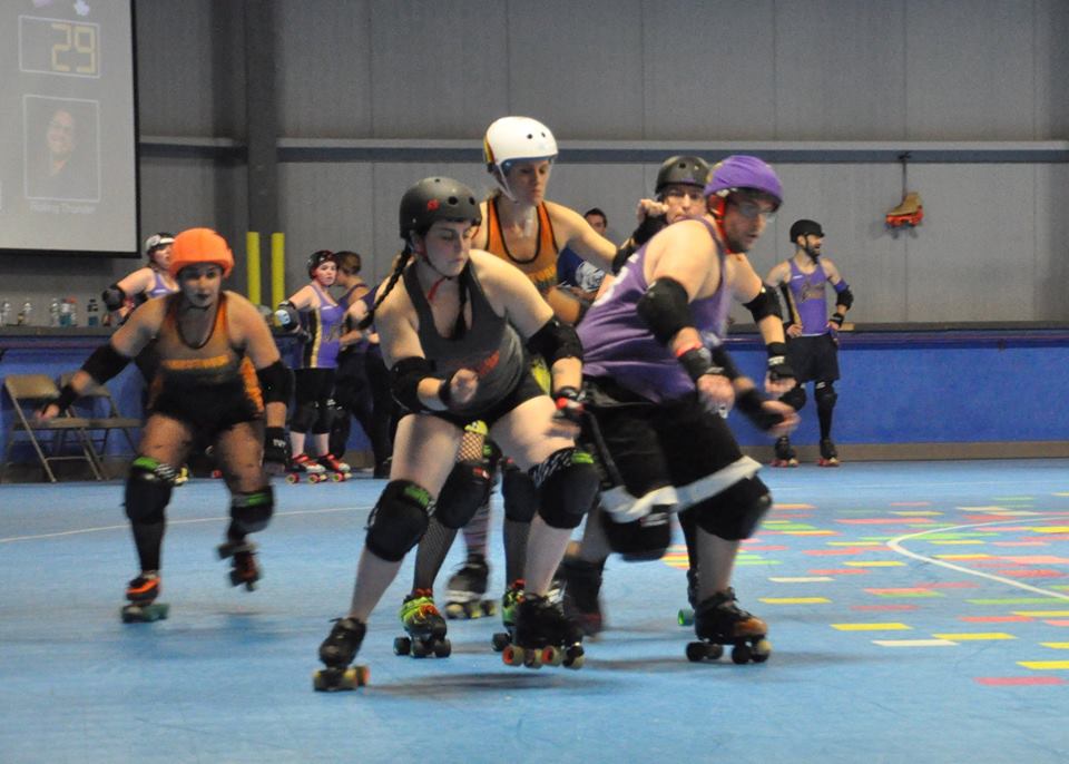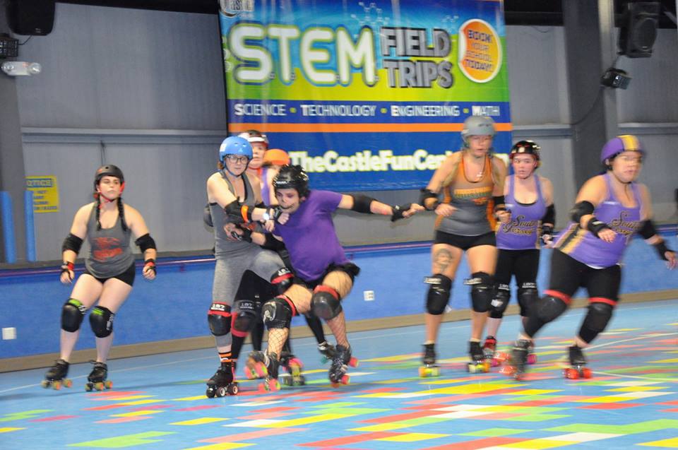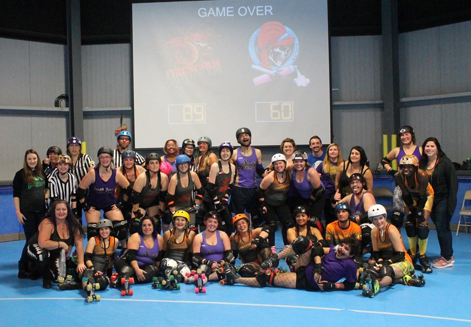 Our first game at The Castle Fun Center was amazing. We had a lot of rookies on our team including Count Smackula and Slay D Bug skating in their first game. With our teamwork and speed, we dominate the first quarter and South Jersey couldn’t catch up. The final score was 89 to 60. MVP Jammers went to two of the smallest players on the track Firestorm’s Slam I Am and South Jersey’s Little Dipper. MVP blockers went to RollArina Grace from FSRD and Baby Doll from SJRD.
